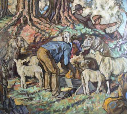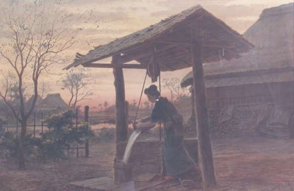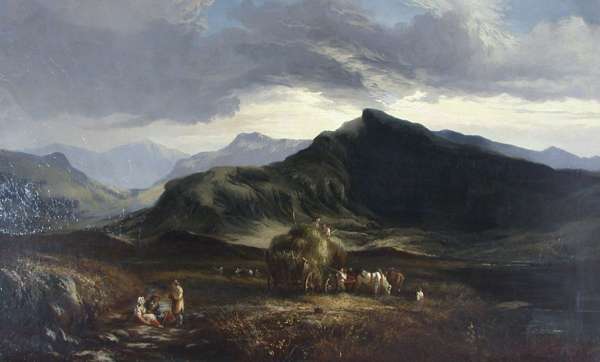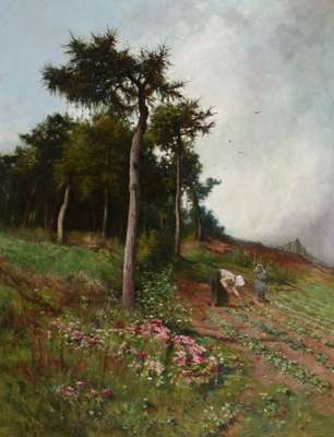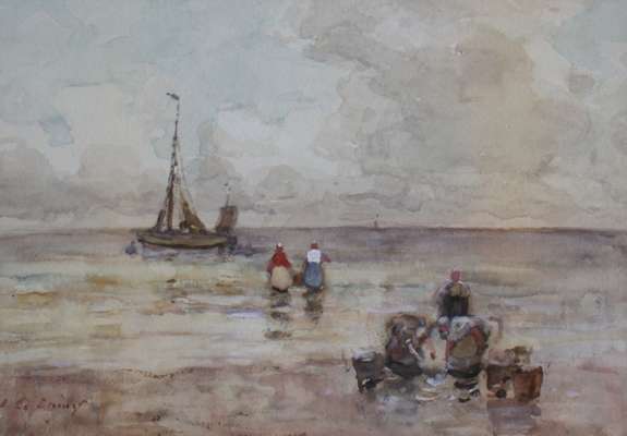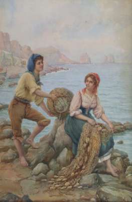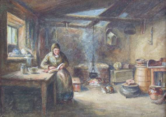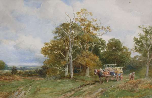 GATHERING FIREWOOD SIGNED, WATERCOLOUR