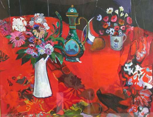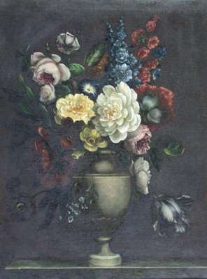 STILL LIFE OF FLOWERS IN A BLUE JUG