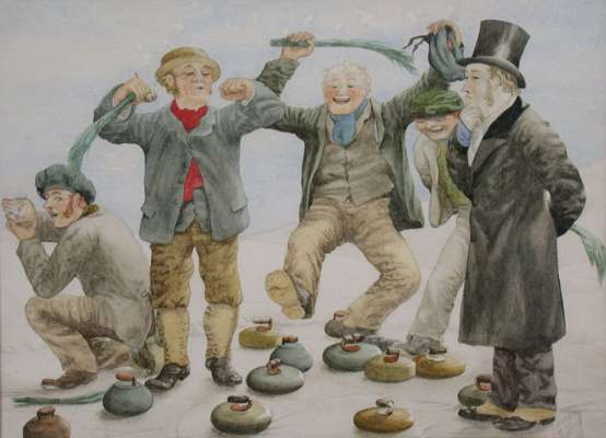 A GROUP OF CURLERS,'HOORAY HE'S DANG OOT THE MINISTER'