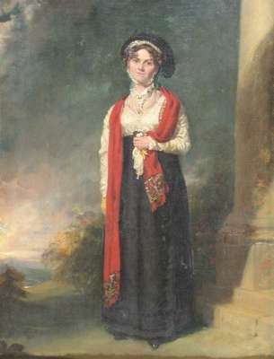 FULL LENGTH PORTRAIT OF A LADY WITH RED SHAWL