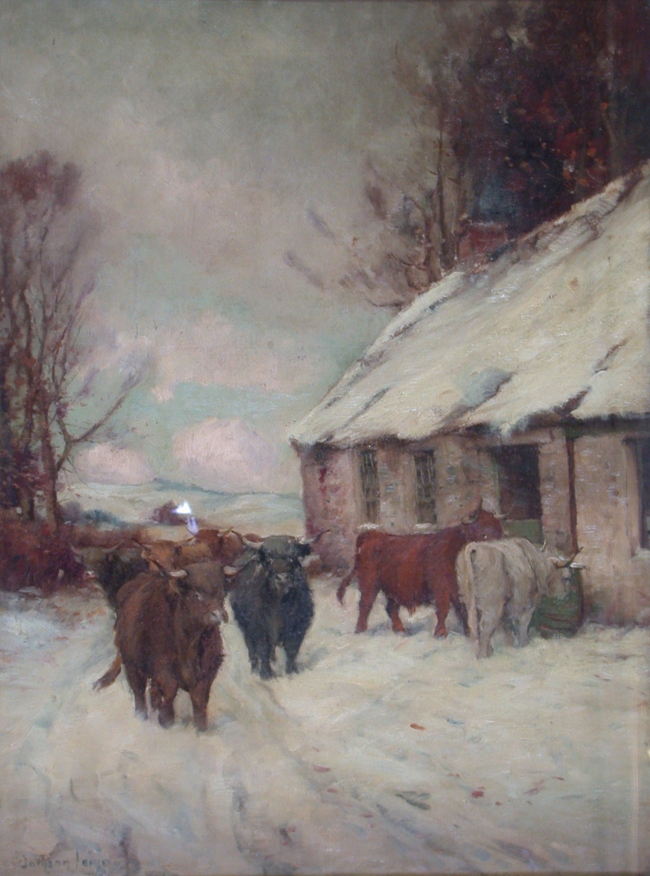 HIGHLAND CATTLE IN A SNOW COVERED LANDSCAPE