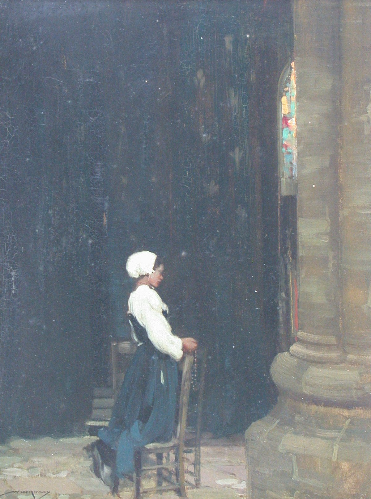 STUDY OF A GIRL IN A CHURCH INTERIOR