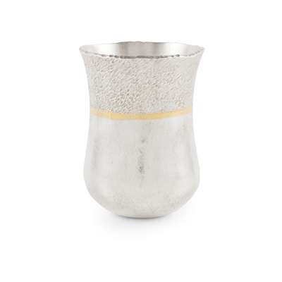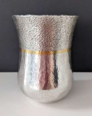 of textured waisted form with a gold band, hallmarked Edinburgh 2013, Britannia standard