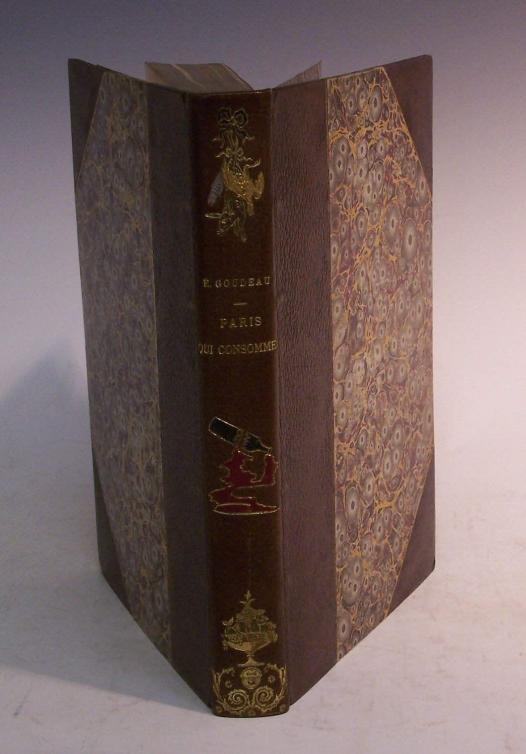 Paris qui consomme. Dessins de Pierre Vidal. Paris: Henri Beraldi, 1893, 4to (270 x 185mm.), number 105 of a limited edition of 138 printed on papier vélin des Vosges, 50 colour plates, later brown half morocco, flat spine gilt with coloured morocco onlays, original wrappers bound in, top edge gilt, others uncut