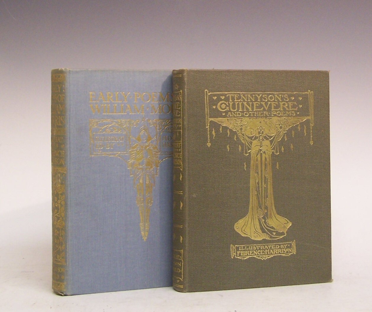 Tennyson, Alfred Lord Guinevere and other poems. London: Blackie & Son, 1912, 8vo, 24 tipped in colour plates, original decorative green cloth gilt, foxing; Harrison, Florence Early poems of William Morris. London: Blackie & Son, 1914, 8vo, 16 tipped in colour plates, original decorative blue cloth gilt, some discolouration to backstrip, some foxing (2)