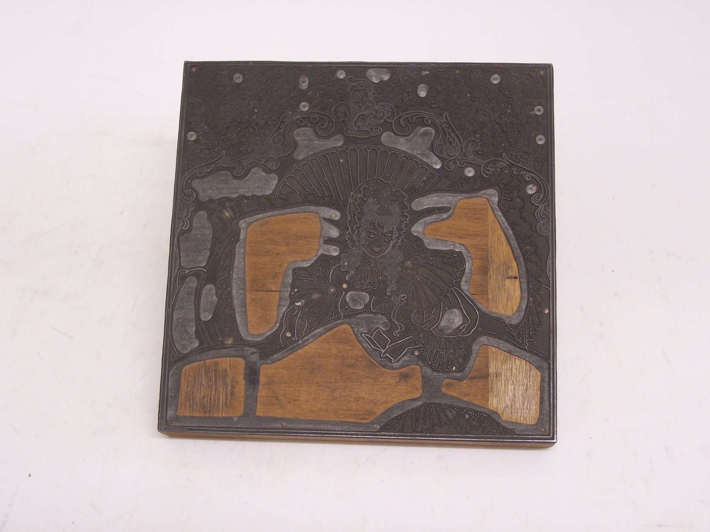 Printing block of The Billet-Doux from Alexander Pope's The Rape of the Lock. London, c.1896, approx 18cm wide by 18cm high