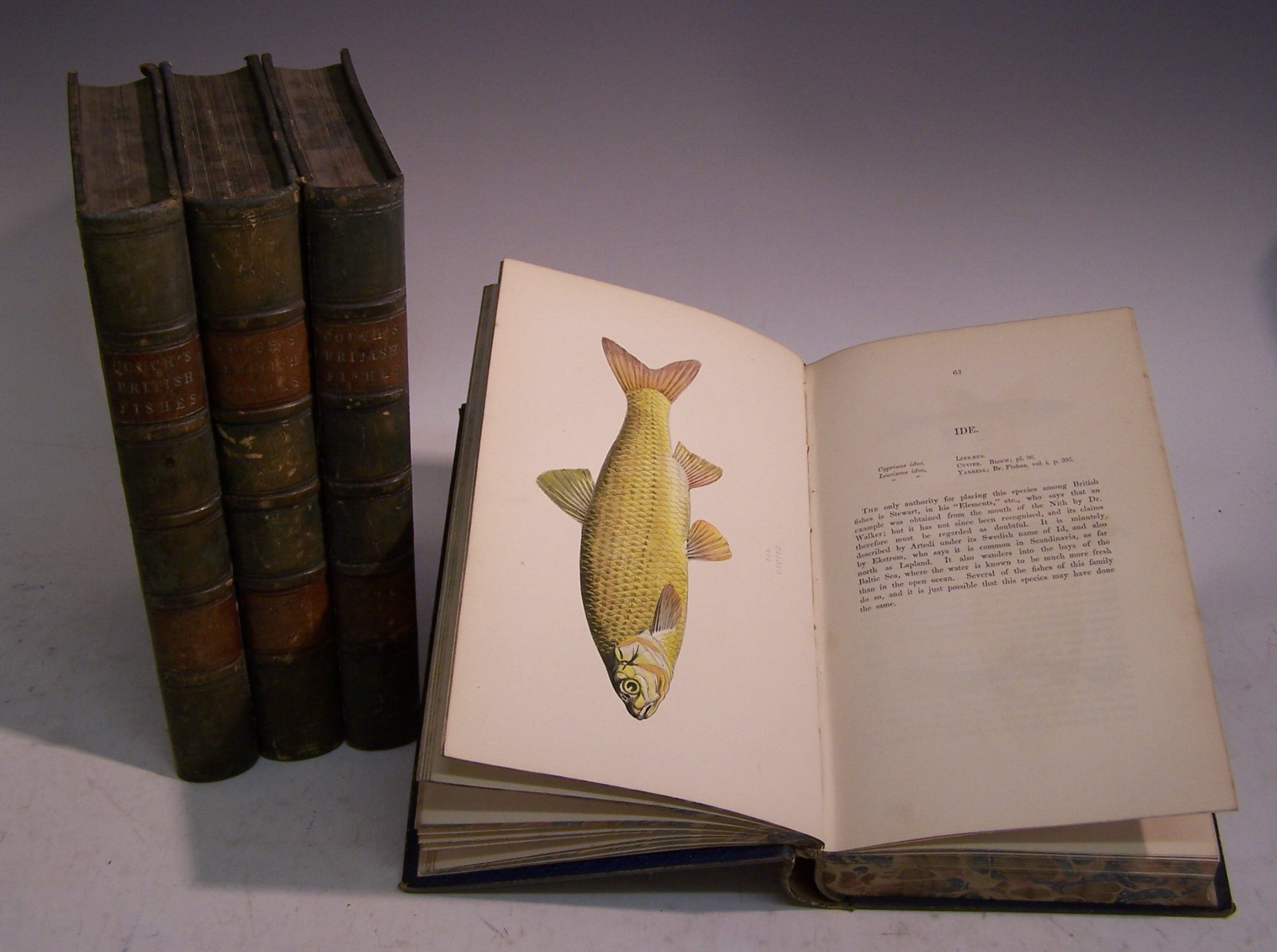A history of the fishes of the British Islands. London: Groombridge and Sons, 1862-1865, 8vo, 252 colour plates, illustrations in text, contemporary full blue calf gilt, brown labels, fading to backstrips, hinges cracking, foxing, bookplates (4)