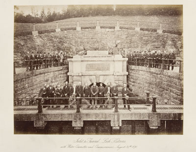 Photographic views of Loch Katrine and some of the principal works constructed for introducing the water of Loch Katrine into the city of Glasgow. Glasgow: Glasgow Corporation Water Works, 1877, oblong folio, 33 albumen prints, images approx 28cm wide by 21cm high, printed inscription below each image, original half red morocco gilt, rubbed, some foxing throughout