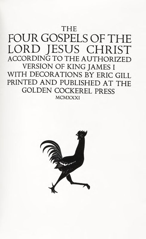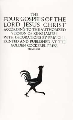 The four gospels of the Lord Jesus Christ. Berkshire: The Golden Cockerel Press, 1931, 4to, number 77 of 500 copies, decorations by Eric Gill, printed in Golden Cockerel type on Batchelor hand-made paper, contemporary half cream morocco gilt, some rubbing to backstrip, interior fine
