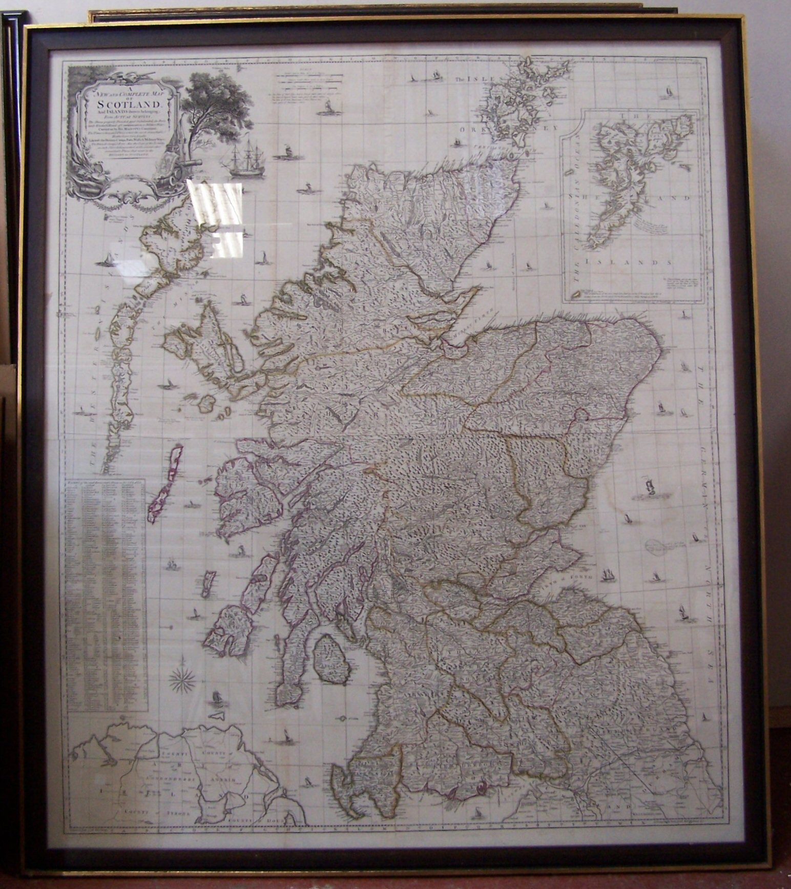 A new and complete map of Scotland and islands thereto belonging from actual surveys. London, [1773], image approx 103.5cm wide by 121.5cm high, formed from four sheets, hand coloured in outline, framed and glazed