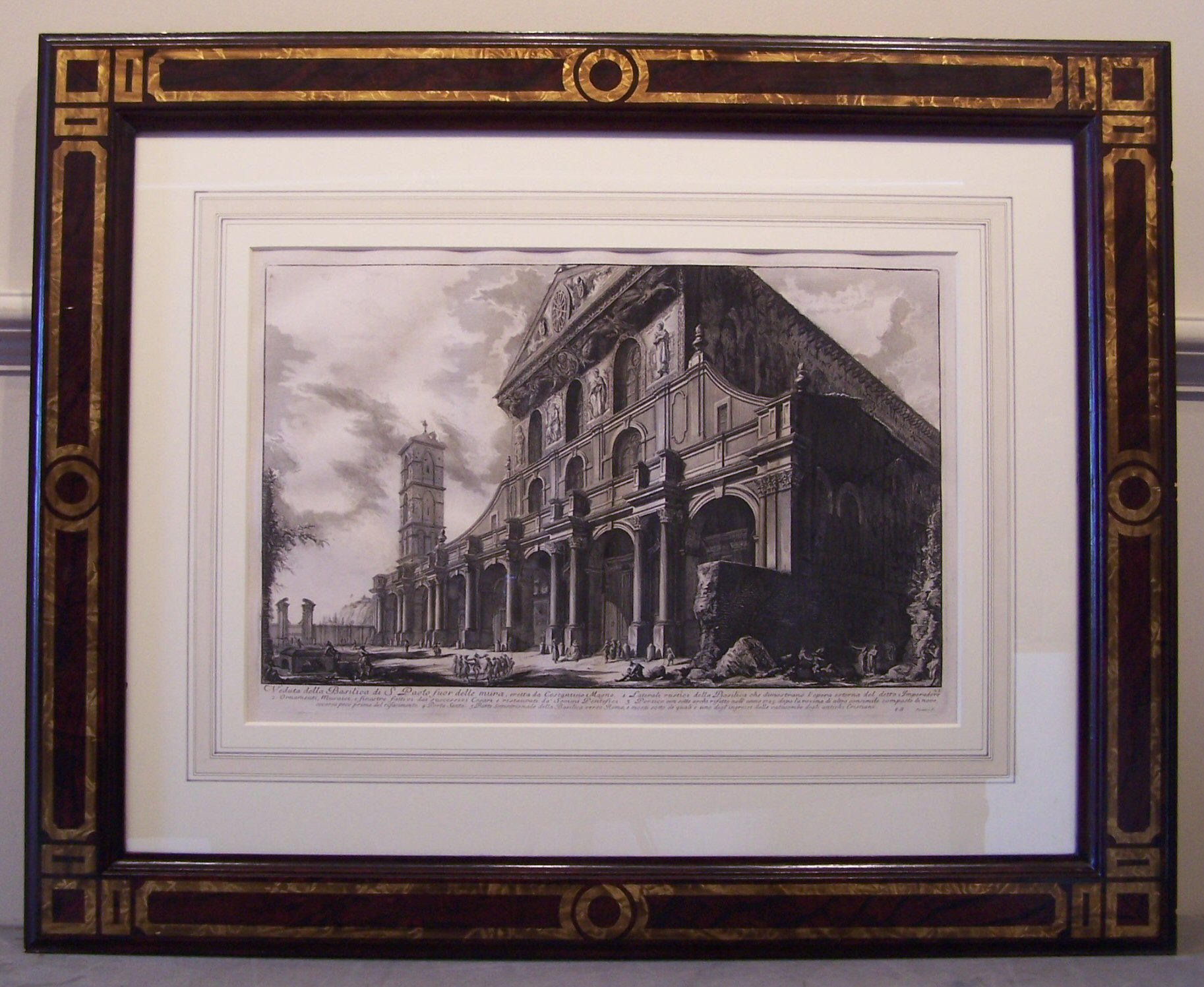 Veduta della Basilica di S. Paolo fuor delle mura eretta da Costantino Magno. [Paris, 1800-1807], copper plate engraving, approx 43cm high by 64cm wide, framed and glazed; Ibid Veduta della Facciata della Basilica di S. Croce in Jerusalemme. [Paris, 1800-07], copper plate engraving, approx 42cm high by 64 cm wide, framed and glazed (2)