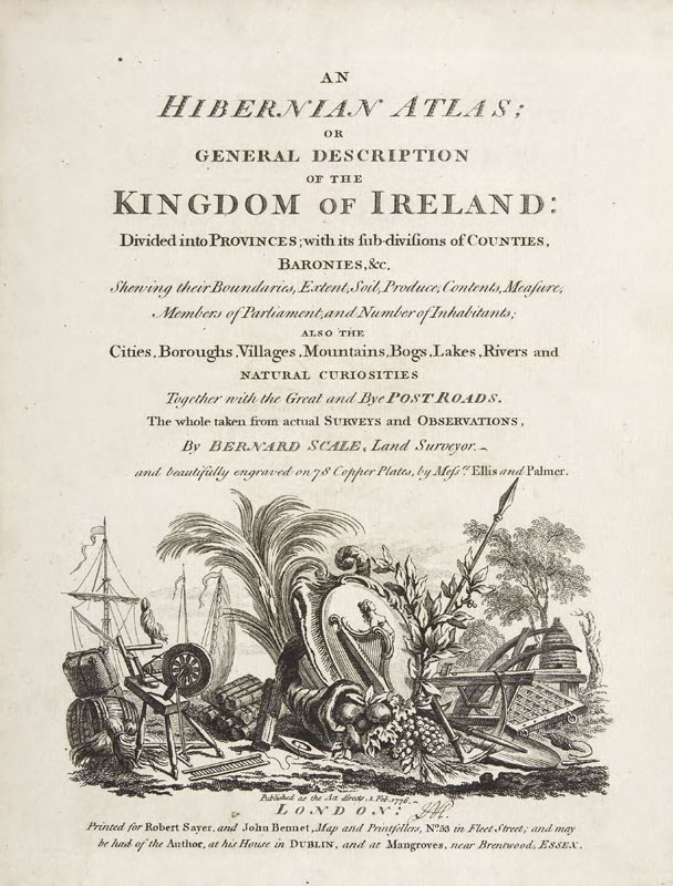An Hibernian Atlas or general description of the Kingdom of Ireland... London: Printed for Robert Sayer and John Bennet, 1776. First edition, 4to, engraved vignette title and dedication, 37 maps, hand coloured, contemporary calf gilt, board loose, backstrip split, interior clean