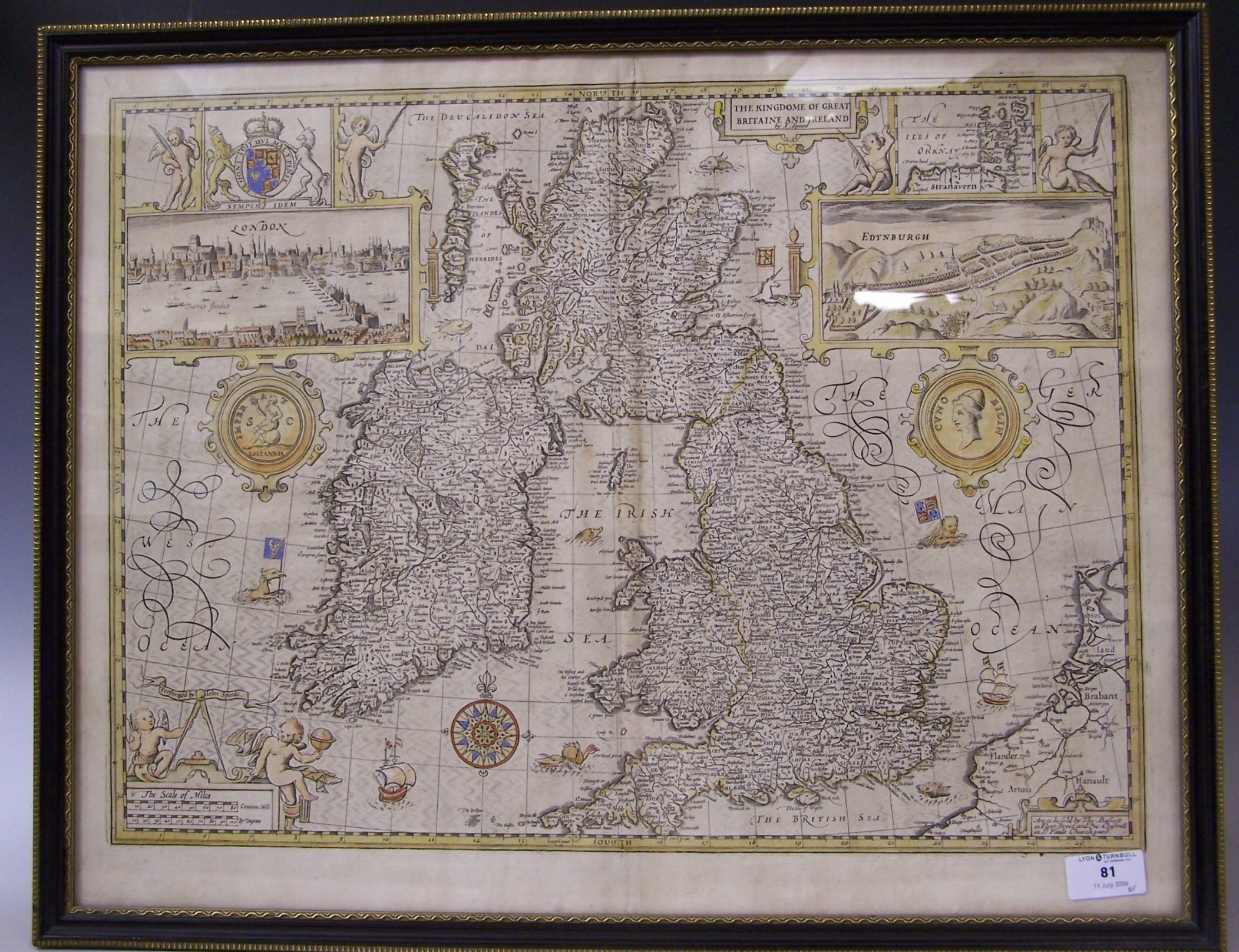The Kingdome of Great Britaine and Ireland, double-page engraved map hand-coloured in outline, English text on verso, inset views of London and Edinburgh, 43 x 55cm., Thomas Bassett and Richard Chiswell