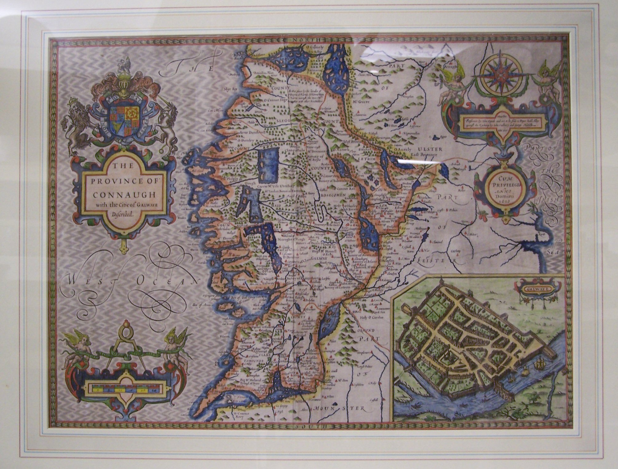 The Province of Connaugh with the Citie of Galway described, [Ireland], double-page hand-coloured engraved map, inset view of Galway, English text on verso, 38 x 51cm., John Speed and George Humble