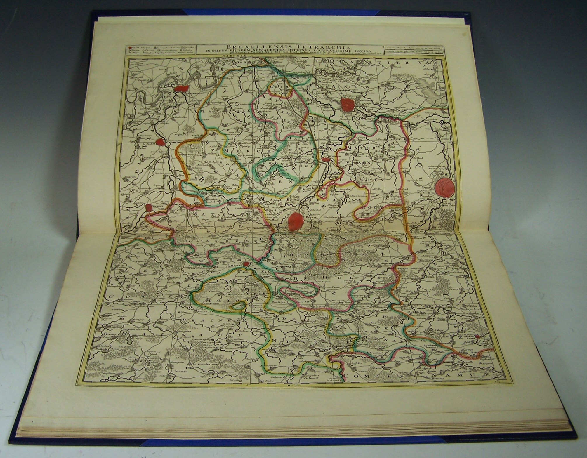 Bruxellensis Tetrarchia; Lovaniensis Tetrarchia; Tetrarchiae Antverpiensis; Leodiensis Episcopatus pars Septentrionalis; Leodiensis Episcopatus pars Media; Tractus inter Sabim et Mosam; Flandriae Comitatus pars Batava; Flandriae Comitatus pars Australis; Flandriae Comitatus pars Media; Flandriae Comitatus pars Occidentalis; Flandriae Comitatus pars Orientalis; Flandriae Comitatus pars Septentrionalis; Brabantiae Batavae pars Occidentalis'; Brabantiae Batave pars Orientalis, 14 double-page engraved maps of Flanders and Belgium, hand-coloured in outline, c.55 x 64cm., mounted on guards [Amsterdam, P. Schenk, c.1720], modern blue half morocco, spine gilt