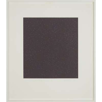 Hugonin brings a rigorous formal approach to this series, as with all of his work. Each image has three formal elements: a ground and two respective groups of dots and linear ellipses, the arrangement and placement of which is determined through a complex numerical system centred around prime numbers. Hugonin describes his artistic intentions with this suite as ‘a series of observations into colour behaviour through the application of elliptical form. Rather than providing any finite conclusion or definitive answers these prints instead open up a series of meditative spaces for the direct experience of colour and its interactions.’