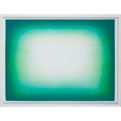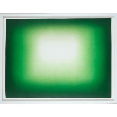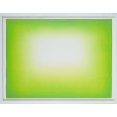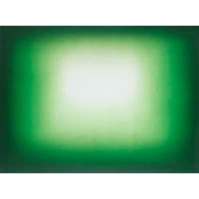 Anish Kapoor is one of the most successful and highly regarded sculptors of his generation. Born in Mumbai in 1954, he has lived and worked in London since the 1970s. Though well known for his sculpture and conceptual art, his works in print are equally compelling, with a similar sensibility to his three-dimensional forms. Investigation into the techniques used to create his desired results reveal a high-level of technical engagement not dissimilar to that required in his sculpture. ‘Green Shadow’ was published by Paragon Press and the artist’s aim was to convey an intensity of rich colour in print by overlaying at least two colours. He began by creating a digital image of gradated tonal forms that was transferred to two photo-polymer plates with half-tone screens. However, in the printing, they did not manage to perfectly overlay the dots and so a moiré, or rippling, effect was created. Kapoor did not view this as an error but rather embraced the resulting visual intensity and used it across the edition. As a result, each print within the edition is unique as the moiré varies according to the atmospheric conditions and pressure of the press.