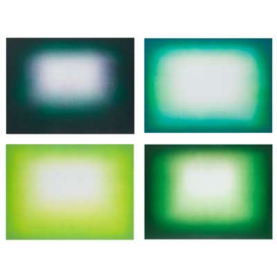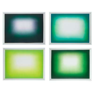 The end results have a three-dimensional quality, with the entrancing impression of a void – a recurring theme of Kapoor’s work. On the subject, he has said ‘the void is not silent. I have always thought of it more and more as a transitional space, an in-between space’ and ‘a void object is not an empty object; its potential for generative possibility is ever present.’ In ‘Green Shadow,’ the finished set’s appearance is deceptively simple but compelling, drawing the viewer in and creating various possibilities in meaning.