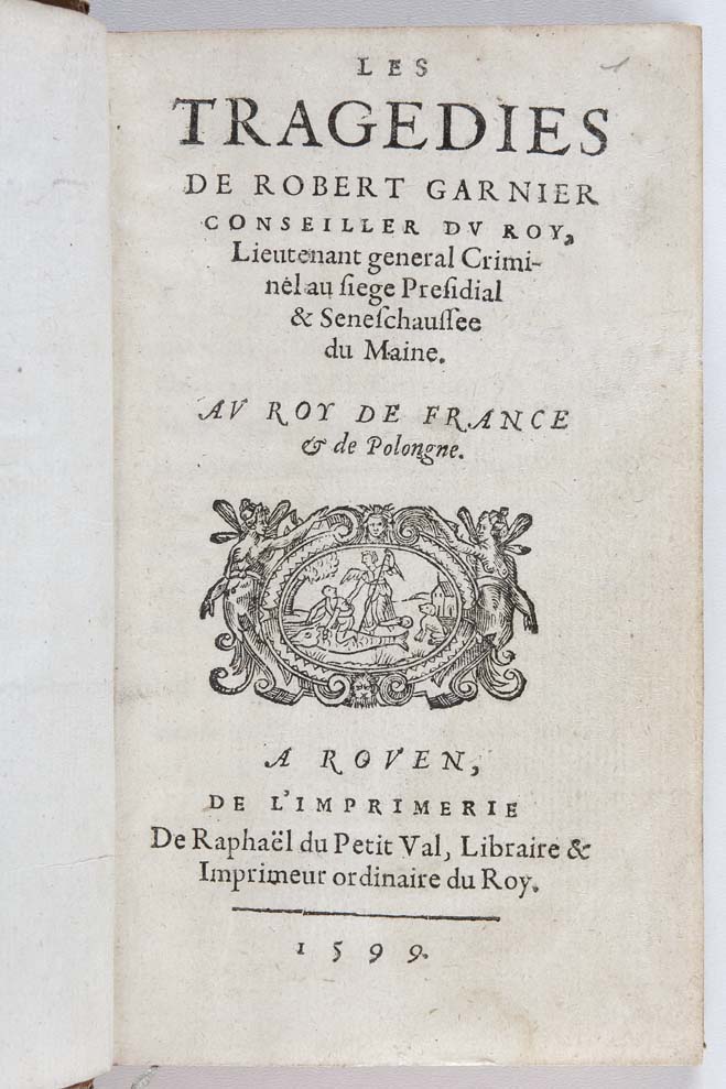 Note: A pretty boudoir copy of an uncommon collected edition of the tragedies of Garnier (1545-1600) including his masterpieces, Bradamante and Les Juives, together with his earlier and lesser known works.