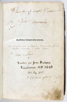 Epistolae. Venice: Joannes Rubeus Vercellensis, 7 January and 12 July 1496, folio, ff. (i-xiv) 15-398 (numbered ix-390), contemporary calf over boards, Paduan in style, lacking clasps, rebacked, some wormholes, lower outer corner of first gathering a bit soiled, wormholes in the first gatherings, some marginal spotting, little tear without loss on f.174, few early marginal annotations