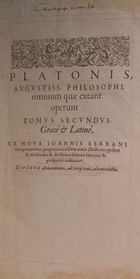 [Opera quae extant omnia ex nova Ioannis Serrani interpretatione. Geneva: excudebat Henr. Stephanus, 1578], volume 2 only, folio, parallel text in Greek and Latin, decorative woodcut headpieces and initials, ruled in red throughout, contemporary calf, spine gilt, wide margins, g.e., worn at extremities