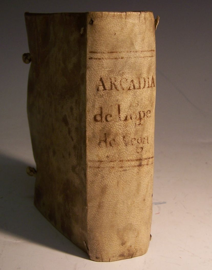 Arcadia, prosos y versos de Lope di Vega Carpio... Madrid: Melchor Sanz, 1653, 8vo, pp. [xvi] 566 [lxvi], contemporary limp vellum, lacking one tie, browning throughout, some staining to title page, inner hinge loose, ink inscription on title