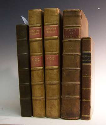 Commentaries... London: Matthew Gillyflower, 1695, folio, portrait frontispiece, 13 plates [some folding], modern calf gilt, water staining throughout, frontspiece repaired; Tacitus The works of... London, 1728-1731, folio, 2 volumes, translated by T. Gordon, contemporary panelled calf gilt, rebacked, wormhole in volume II from pp.65 to end [no text loss]; and 3 others (6)