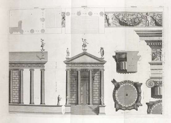 Note: A very good copy of William Newton's edition. In 1771 Newton published an English version of Vitruvius's De architectura so that - as he explained in the preface - England might not be the only "polished nation" that did not possess Vitruvius in its own tongue. In this copy the plates of Volume I are numbered and there is no alteration slip pasted onto the imprints. Many of the plates have been re-engraved and some of the figures enlarged. This two-volume edition was published by James Newton who states in his notice "To the Public" that all of Volume I and part of Volume II were printed before his brother's death in 1790. Brunet V, 1331; Cicognara 736; Fowler 428.