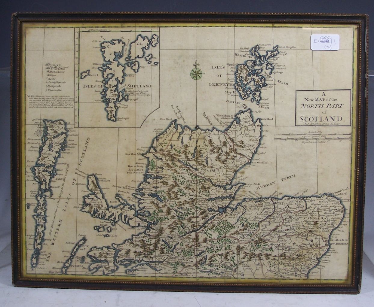 A new map of the north part of Scotland, c.1722, hand coloured in outline, approx 36 by 46cm, previous folds, some foxing, framed and glazed; Ibid A new map of the south part of Scotland, c.1722, hand coloured in outline, approx 36 by 46cm, framed and glazed; Moll, Herman The isle of Mull, c. 1725, hand coloured in outline, approx 21 by 28cm, framed and glazed and another map unframed (4)