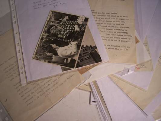 A collection of 22 documents relating to the position of John Gibson as Sir Winston Churchill's footman / valet, including a photograph of Winston Churchill standing with horse outside Chartwell, with inscription "Taken at Chartwell, 1948, Mr Churchill wearing my tie which he borrowed, John Gibson"; a signed photograph of Mrs Clementine Churchill; three typed letters signed from Churchill's private secretary [Penelope Hampden Wall] offering the position of footman to Mr Gibson in Spring 1948; telegram confirming Mr Gibson's appointment dated May 10th 1948; invitation for The Rt. Hon and Mrs Winston Churchill for dinner at Claridges with the Shahinshah of Iran, dated 29th July 1948 [accepted]; a typed note of two days of Churchill's engagements dated 20th August 1948; typed list of Churchill's engagements dated October 21st 1948; a list of five guests with notes for a parliamentary luncheon No. 19 November 4th; a typed list of requests for John Gibson from E.G. dated 14th November 1948; a typed letter signed from Mrs C. Churchill relating to Mr Gibson's promotion to Mr. Churchill's footman-valet dated 25th November 1948; two facsimile letters from Churchill with thanks for birthday wishes, November 30th 1949 and November 30th 1953 with another undated; telegram from Winston Churchill "thank you so much", dated 1st December 1950; typed letter signed from Churchill's Private Secretary [Cecily Gemmel] apologising for the lack of current vacancies dated 30th October 1951; telegram from Winston Churchill sending thanks, dated 1 December 1951; two facsimile letters from Churchill sending Christmas thanks, with postmarked envelope, dated 25 December 1951 and 1953 respectively; two photocopied pages from a A4 diary showing the Churchill's movements in London from July 19th to August 15th 1948 (22)