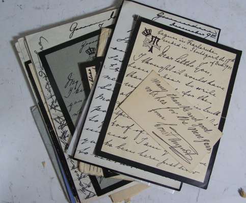 A large collection of approximately 130 autograph letters signed, in English, to Emma Lettice Violet Knollys (1871-1925), from 50 from Marie Louise, Princess of Denmark, approximately 30 to "My dear sweet little Punch", signed "Empress", and occasionally Olga, approximately 40 letters and 18 telegrams from Princess Thyra of Denmark, many from [Schloss Cumberland], Gmunden; and from other members of the Danish royal family, and a small number of postcards (quantity)