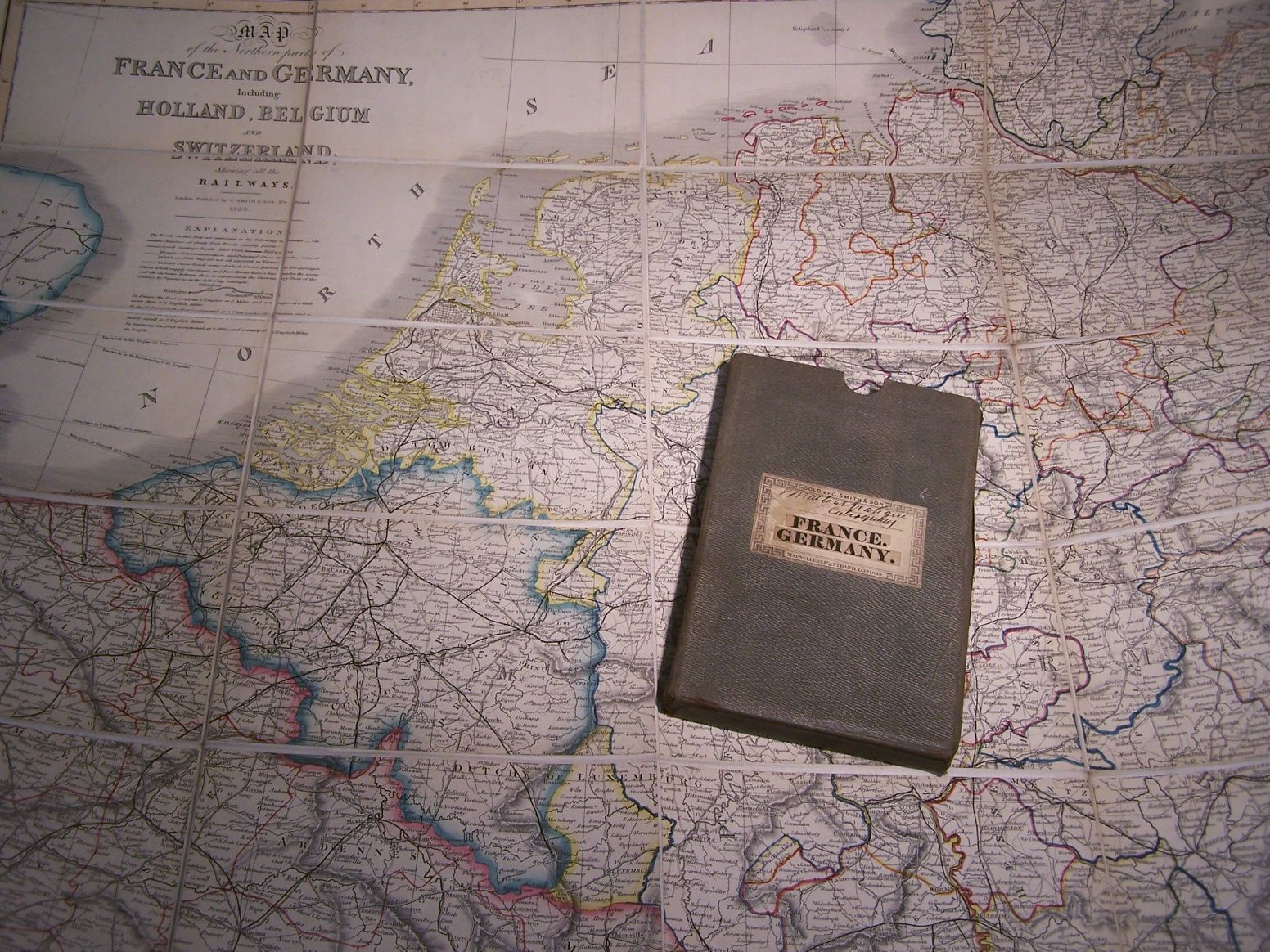 Map of the northern parts of France and Germany, including Holland, Belgium and Switzerland, showing all the railways. London: C. Smith, 1859, engraved map, hand-coloured in outline, dissected and backed on linen, 106 by 85.5cm., original cloth slipcase with paper label