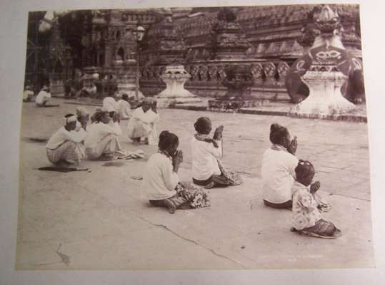 An album, c. 1880, containing 2 albumen prints of Port Said, approx 20 by 26cm; 10 albumen prints of Calcutta, approx 23.5 by 29.5cm, some signed in negative by W.H. Stretton; 4 albumen prints of Bengalise tribes, approx 24 by 29cm; 14 albumen prints of Assam, mainly of tea plantations and temples, approx 18 by 23cm; reminder of scenes in the UK, pasted onto card leaves, contemporary blue morocco gilt