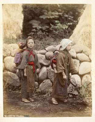 An album of 50 tinted photographs Yokohama, Tokyo, Nagasaki and others, circa 1880's, each landscape view approx 19.5 by 26cm, pasted onto both sides of leaves, laquered and inlaid boards depicting birds and insects, lacking morocco backstrip and some inlay lacking on upper board