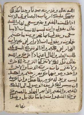 Kitab bidayat al-hidaya [and other works]. MS, 103 leaves, 17x12 cm, written in three hands, the first an elegant, upright naskh, unvocalised; the second a vocalised, tightly written, forward leaning naskh, and thirdly, Ghazali's Kitab bidayat al-hidaya in an African hand
