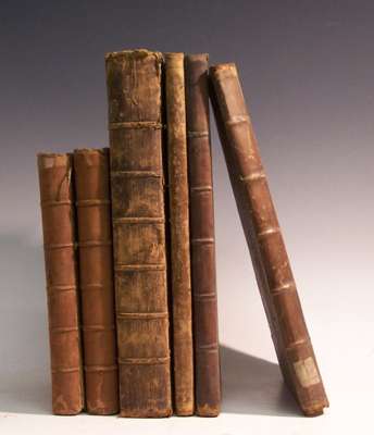 Committee book of the Society at Glasgow for promoting religious knowledge among the poor, 1758-65, 2 vol, 4to, in total c. 80pp., contemporary calf, worn, one cover detached; and 3 other manuscript volumes relating to the affairs of George Brown of Capelrig, an account of disbursements of James Graham, 1757-60; and volume of pressed flowers with Latin captions, contemporary half calf, rubbed (6)