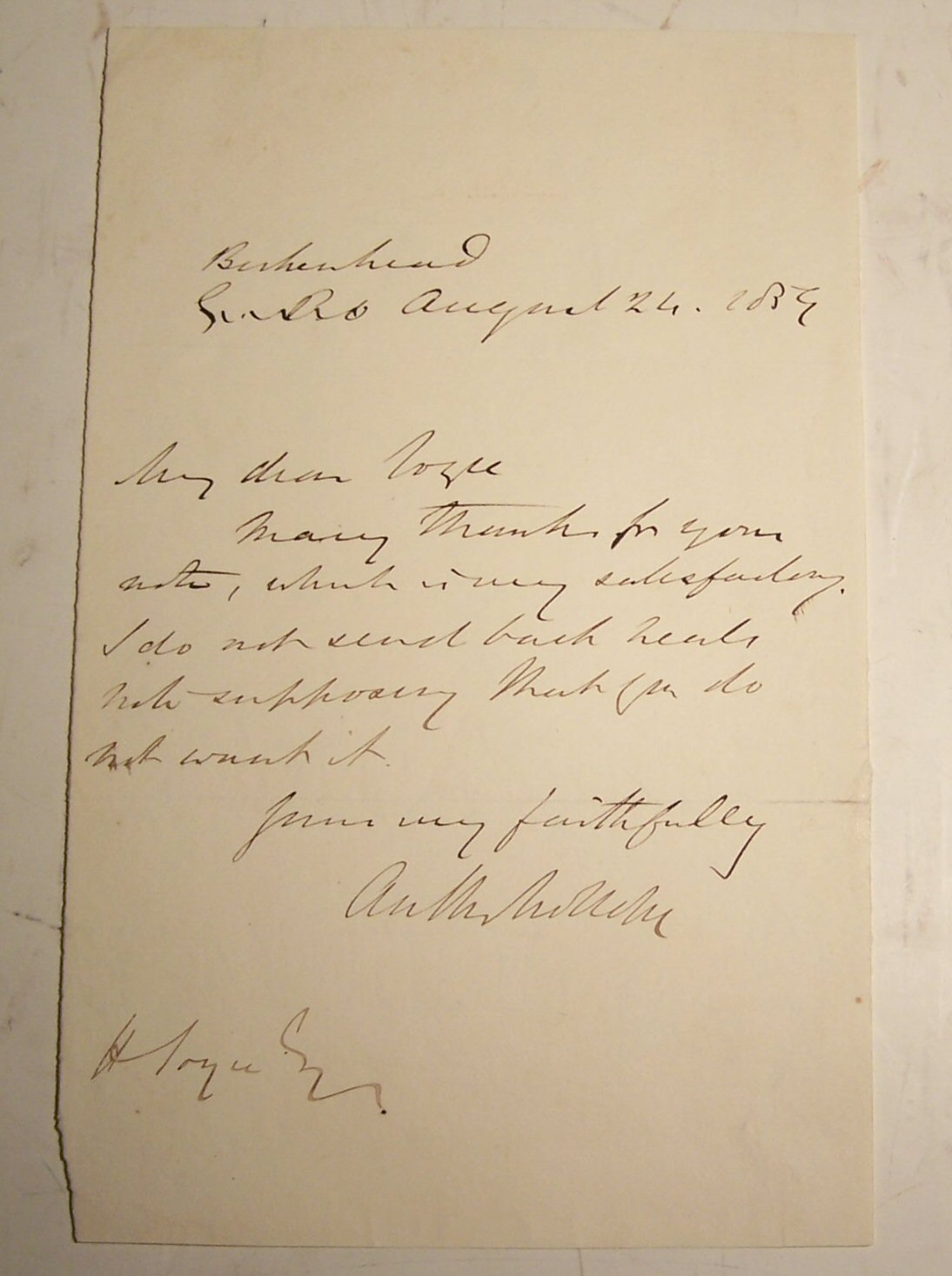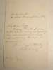 Autograph letter signed to Herbert Joyce (1831-1897, Post Office official and librarian, later its historian) "My dear Joyce. Many thanks for your note which is very satisfactory. I do not send back Neal's note supposing that you do not want it. Your very faithfully, Anthony Trollope", one page, Birkenhead, 24 August 1859