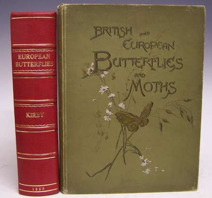 European butterflies and moths. London: Cassell, 1889, 4to, 61 hand-coloured plates, 1 uncoloured plate, modern red half morocco, spine gilt, occasional light spotting; Kappel, A.W. and W. Egmont Kirby British and European butterflies and moths. London & New York, [1890], 4to, 30 chromolithographed plates, original pictorial cloth, head and tail of spine very slightly rubbed (2)