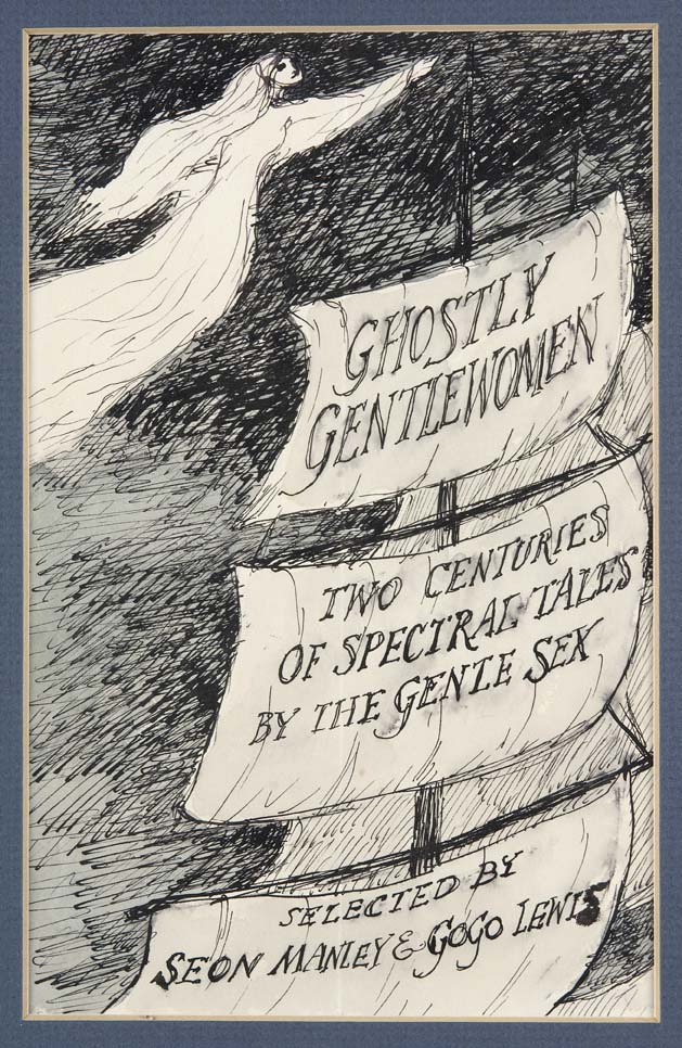 Original preliminary illustrations for the dustwrappers of Ghostly Gentlewomen [published 1977] and Ladies of Fantasy [published 1975], pen and ink, each approx 15cm wide by 23cm high, framed and glazed together; Manley, Seon & Lewis, Gogo Ladies of fantasy. New York, 1975, 8vo, dustwrapper illustrated by Gorey, some fading to backstrip, very good copy; Ibid Ghostly gentlewomen. New York, 1977, 8vo, illustrated dustwrapper by Gorey, a very good copy; Manley, Seon The ghost in the far garden. New York, 1977. First edition, 8vo, illustrated by Emanuel Schongut, original boards, dustwrapper, fine copy (4)