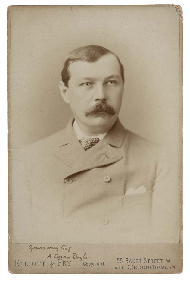 Signed portrait photograph by Elliott & Fry, 55 Baker Street, London, inscribed by sitter in ink on mount " yours very truly, A Conan Doyle" approx 11cm wide by 17 cm high