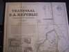 Jeppe, Frederick. Map of the Transvaal or S.A. Republic and surrounding territories. Pretoria, 1889, large engraved map hand-coloured in outline, dissected and backed on linen, inset plan of Pretoria and goldfields, 129 x 122cm, folding into cloth boards, boards lightly soiled, map clean