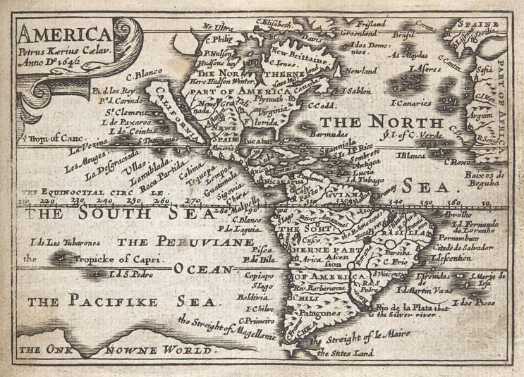 England, Wales, Scotland and Ireland described and abridged with ye historic relation of things. [London]: George Humble, 1627, oblong 8vo (95 x 150mm.), engraved title (stained), catalogue and 62 (of 63) engraved regional and county maps by Pieter van der Keere, many reduced from Speed's folio atlas, lacking the folding map of Great Britain and most of Yorkshire map, also lacking I4 and I6, title cropped to neatline, top of map of Leicestershire, M1 and Q5 burnt with loss, Denbigh map with loss of lower 5mm from adhesion, Scotland and Ireland maps with small burn hole, Z1 holed with loss of text, Surrey & Herefordshire & Huntingtonshire map with a margin shaved, small adhesion to neatline of Isle of Man, rather soiled and stained; A prospect of the most famous parts of the world. London: M.F. for William Humble, 1646, oblong 8vo, 19 (of 20) engraved maps, title laid down, "A" of title shaved, lacks all after O2, rather soiled and stained; 2 works in one volume, contemporary calf, worn, upper cover detached