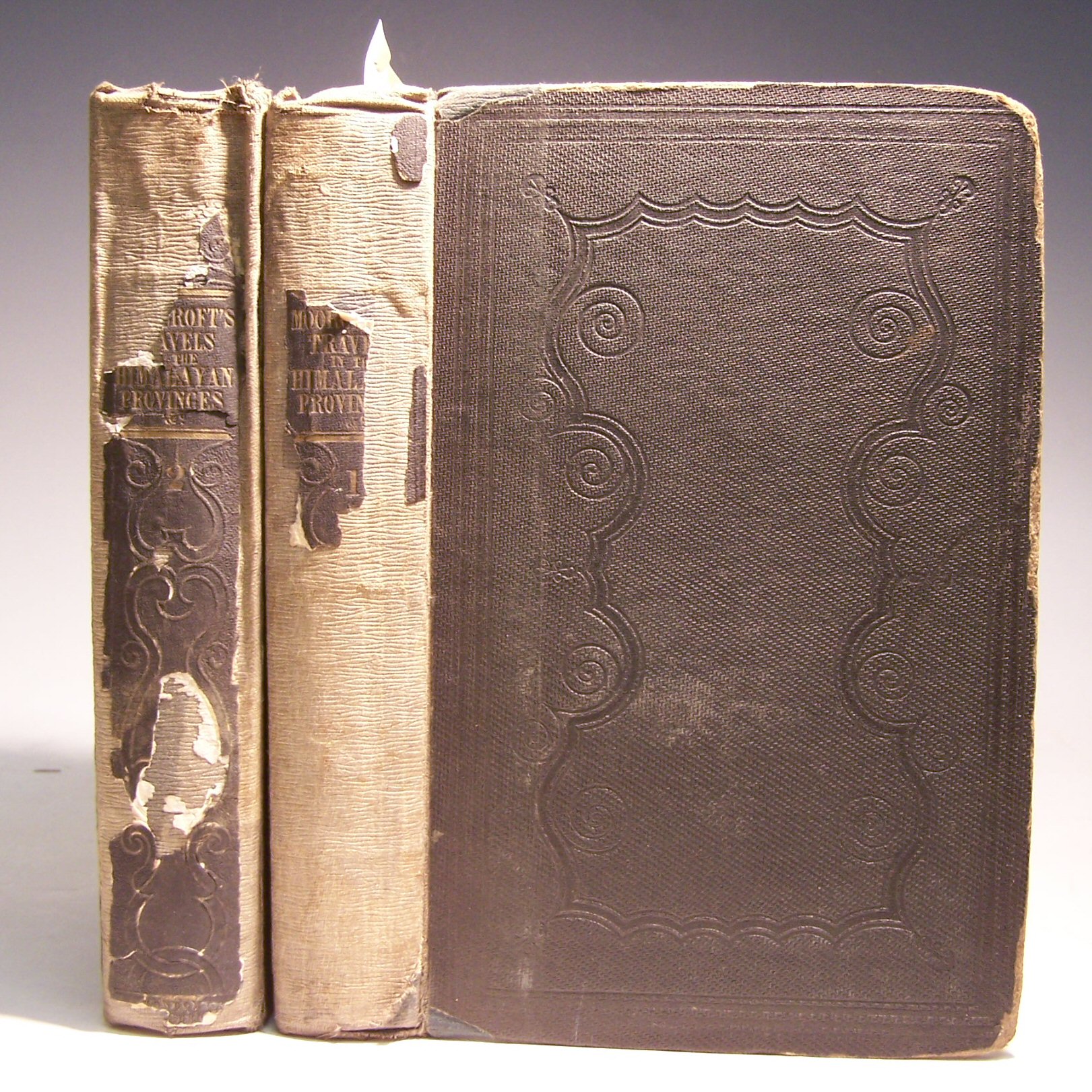 Travels in the Himalayan provinces of Hindustan and the Panjab, in Ladakh and Kashmir. London: John Murray, 1841, first edition, 2 volumes, 8vo, 2 lithographed frontispieces, 1 folding map, publisher's cloth, early owner's ink stamp (T.W. Mayer) on titles partly offset onto frontispieces, 12pp. advertisements at end of volume 1, bindings poorly rebacked with cloth, edges and corners worn, upper hinge of volume 2 weak