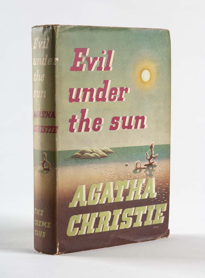 Evil under the sun. London: Collins, 1941. First edition, 8vo, original orange cloth, pictorial dustwrapper, price 7s 6d, small chips to head and tail of backstrip and corners, backstrip slightly faded, tape repairs to lower hinge of wrapper [full length of hinge], interior very clean