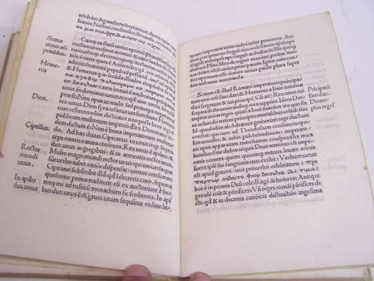 First edition of these two pamphlets by the humanist Filippo Beroaldo. The first one contains a dispute between three brothers - a philosopher, a physician and an orator - whose father has bequeathed his patrimony to the one whose profession is the most useful to society, but it is of course the orator who gets the inheritance because, even though his profession is probably least useful, he is best at defending it (this was a literary device Beroaldus used to good effect in different works on a number of occasions). The second pamphlet is an early treastise on statecraft treatise. Filippo Beroaldo (1453-1505) opened a school in his home town Bologna when he was only nineteen. Later he became Professor of Letters at the University, a job he held until his death.