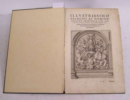Indiae orientalis navigationes. Frankfort, 1598, part one only?, pp. [6] 60 [6], first work lacks title page, woodcut ornament, engraved coat of arms [with] Icones quibus ad maiorem lectoris recreationem... Frankfort, 1598, pp.14, 14 large engravings in text, modern morooco, red label, inner hinge weak, some light foxing. Sold not subject to return.