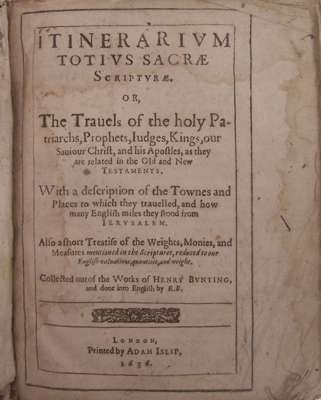 A popular and detailed topography of Palestine by the Protestant theologian Henry Bunting (1545-1606) by way of an account of the travels of most of the principal figures of the Old and New Testaments.