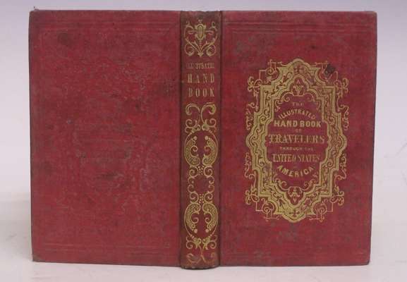 The illustrated hand-book, a new guide for travelers through the United States of America. New York: Sherman & Smith, 1849, 12mo, engraved frontispiece, large folding engraved map hand-coloured in outline with inset map of New York, Boston and Albany, illustrations in text, advertisement leaf before title, original red cloth gilt, binding lightly soiled
