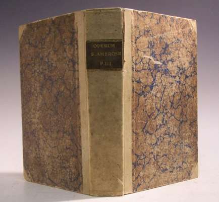 Operu sancti Ambrosii pars tertia. [Basle: p magistru Johannem de Amerbach, 1492]. Folio, text of the Epistola in Roman, the rest in Black Letter, text in two columns apart from the Epistola, capitals left blank with guide letters, later quarter vellum, titlepage a little discoloured, extensive repairs to worming at inner margins, some patches of water staining, library stamp in the lower margin of the last leaf and library label of Swindon Public Refernce Library