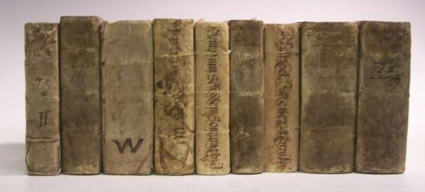 Opera omnium … cum Averrois Cordubensis … interpretis, variis in eandemcommentariis .. Venice: apud Cominum de Tridino Montisferrati, 1560. 7 of 11 volumes (lacking 4, 6, 8 & 9), with volumes 10 & 11 bound together, 8vo., printer's device on the title-page, larger version at the end of volumes 2 and 7, a mixed set in contemporary vellum (some limp), some volumes with ownership inscription on the title-page, some with a library stamp on the verso of the title-page, sold with all faults, and 3 others (10)